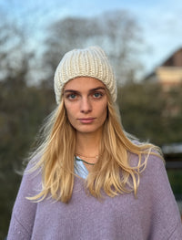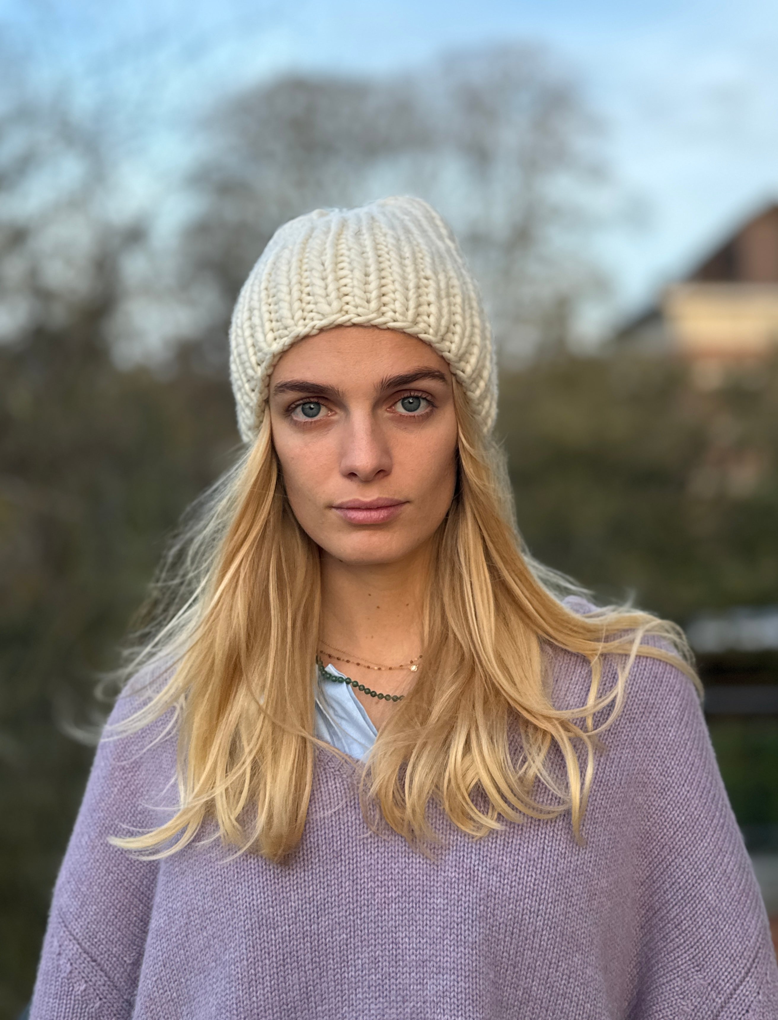 Bonnet Amelia in Ivoire is the perfect accessory to brighten up your fall all and winter wardrobe. It is hand-knitted by artisans in Peru from sumptuous 100% natural yarns that are specifically made to order for WEHVE.