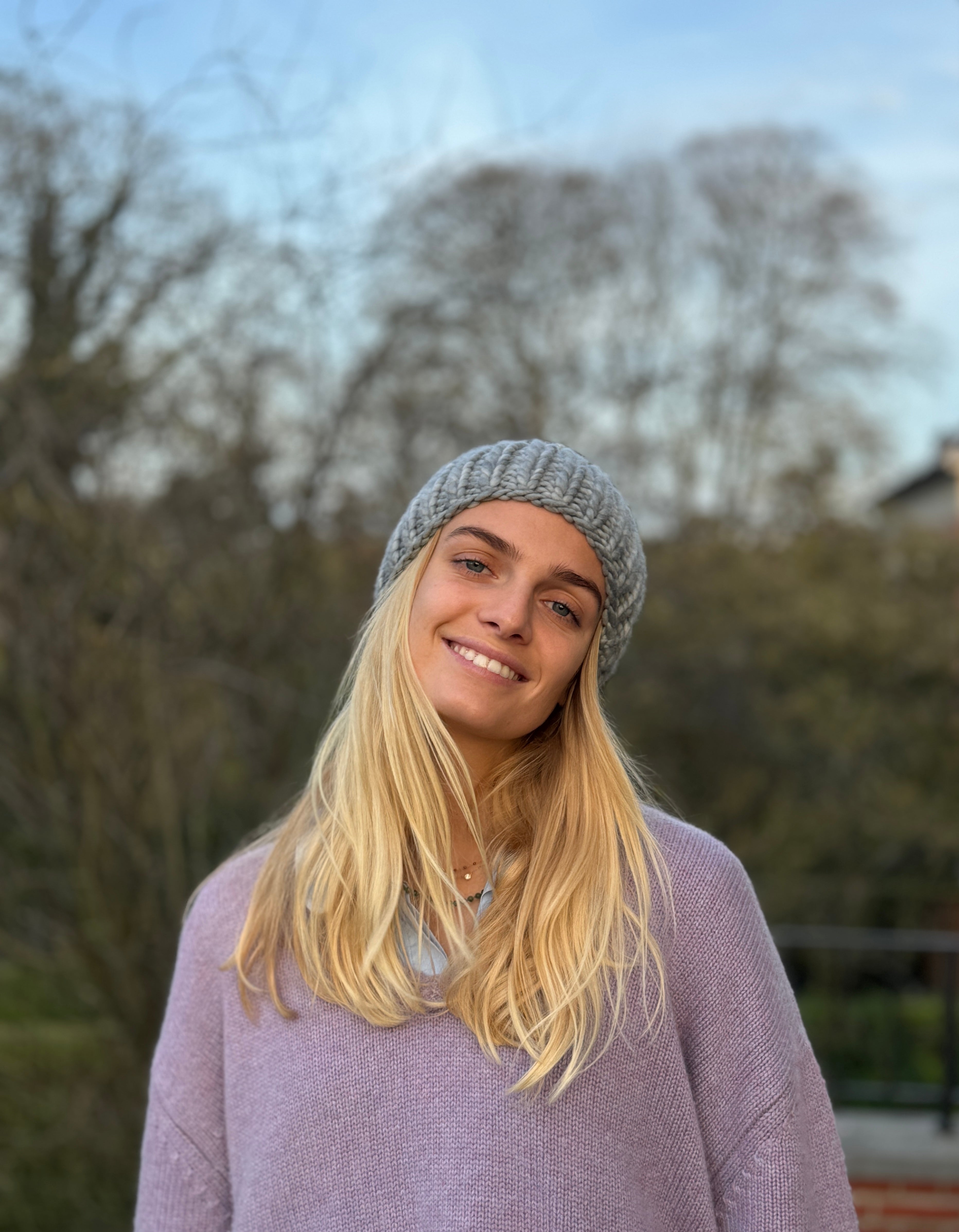 Bonnet Amelia in Stormfront is the perfect accessory to brighten up your fall all and winter wardrobe. It is hand-knitted by artisans in Peru from sumptuous 100% natural yarns that are specifically made to order for WEHVE.
