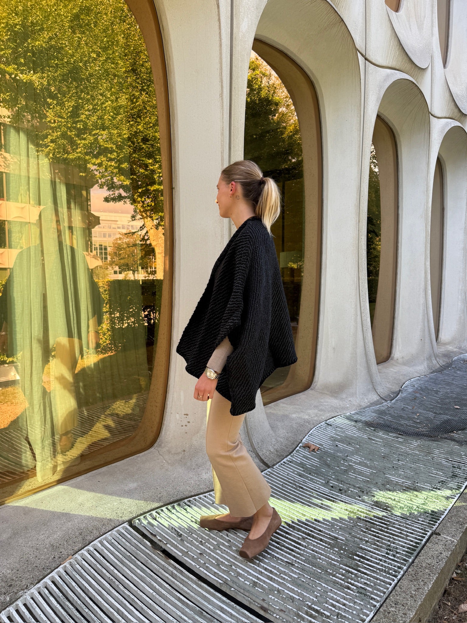 The cardigan Luna, is shorter than the Bella and does not have the short fringe. It is a versatile piece, easy to combine with casual and more dressed up looks. It is handwoven from 100% luxurious yarns made specifically for WEHVE