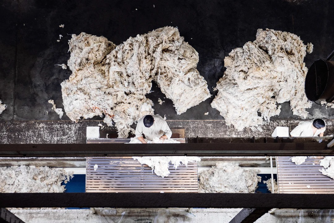The wool is then thrown onto the sorting table and checked for fineness, stability, fullness, and resistance. Fleeces are washed to remove dirt, dust, vegetable matter, sweat, and wool grease.