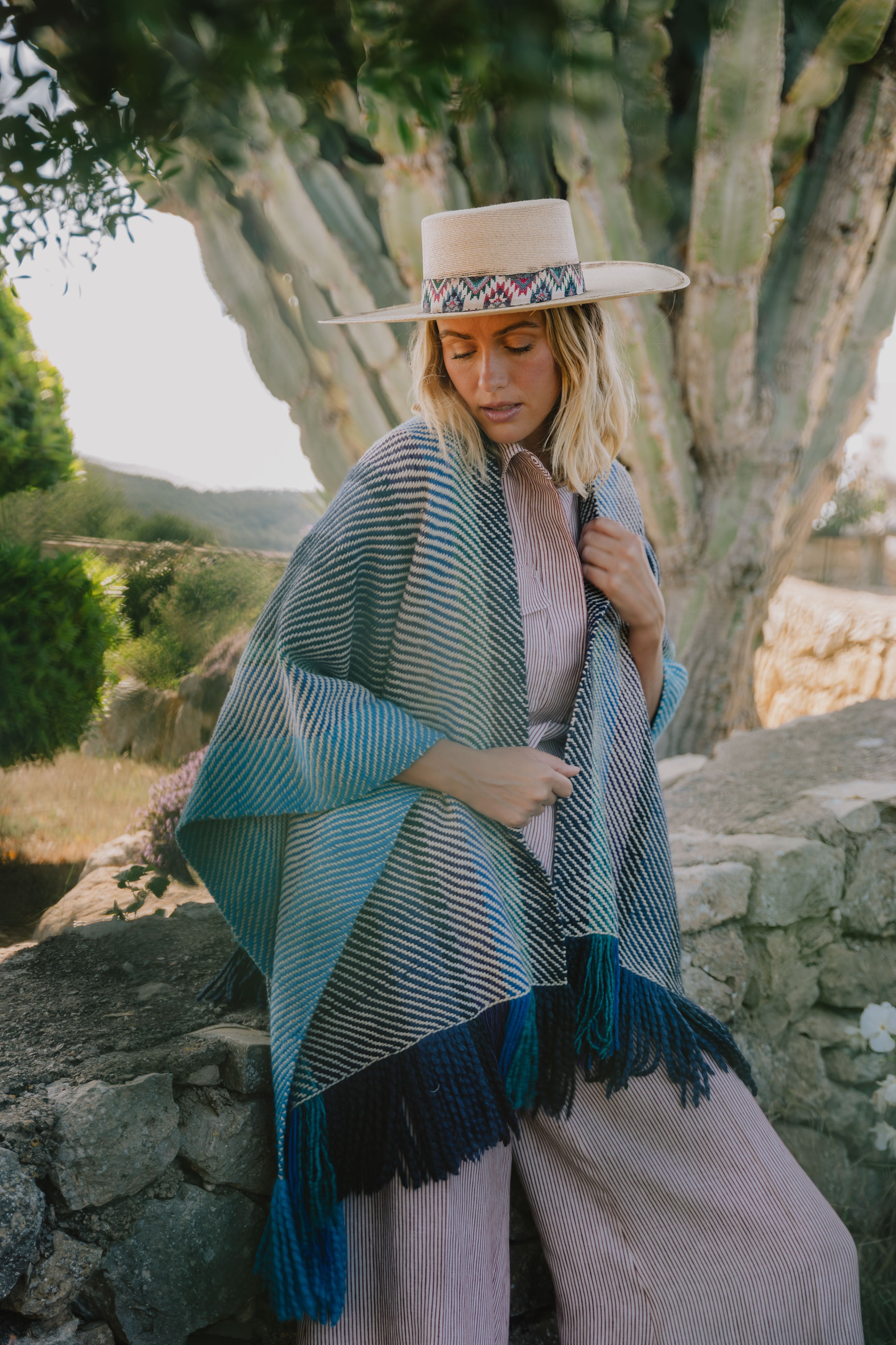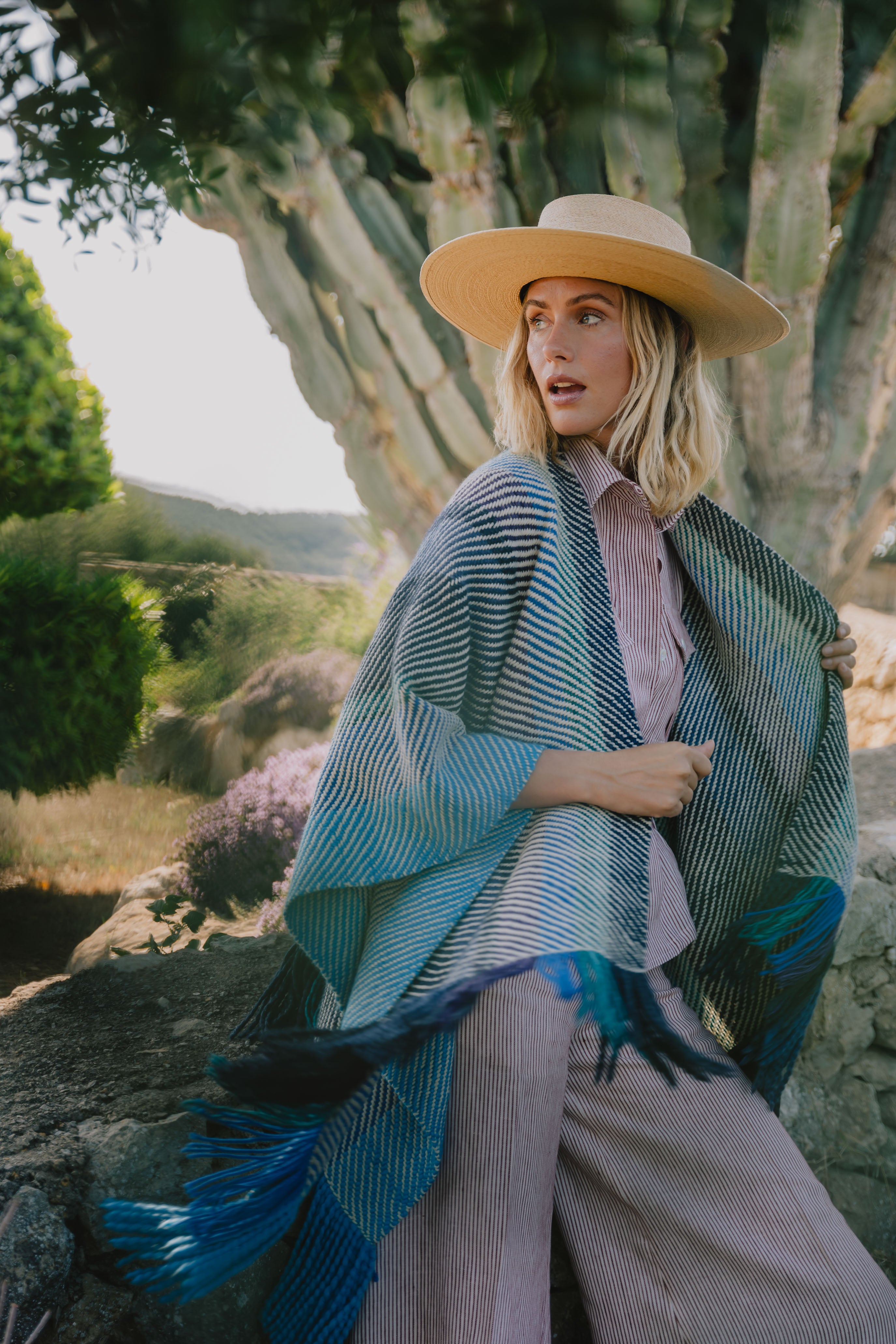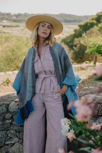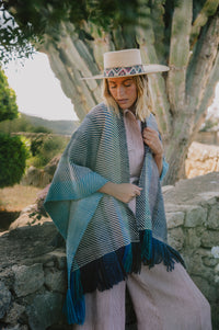 The Kaftan Aline is beautifully handwoven in natural wool textiles. It is the perfect neutral yet bold piece to accompany you everywhere from the beach to the fireplace. It is handwoven by artisans in Peru from exclusive merino yarns that are specifically hand dyed to order.
