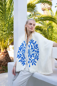 Lose Cardigan Bella - Agapantos Large - Bluebell - Ivoire