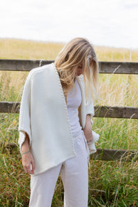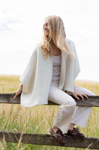 The cardigan Luna, is shorter than the Bella and does not have the short fringe. It is a versatile piece, easy to combine with casual and more dressed up looks. It is handwoven from 100% luxurious yarns made specifically for WEHVE